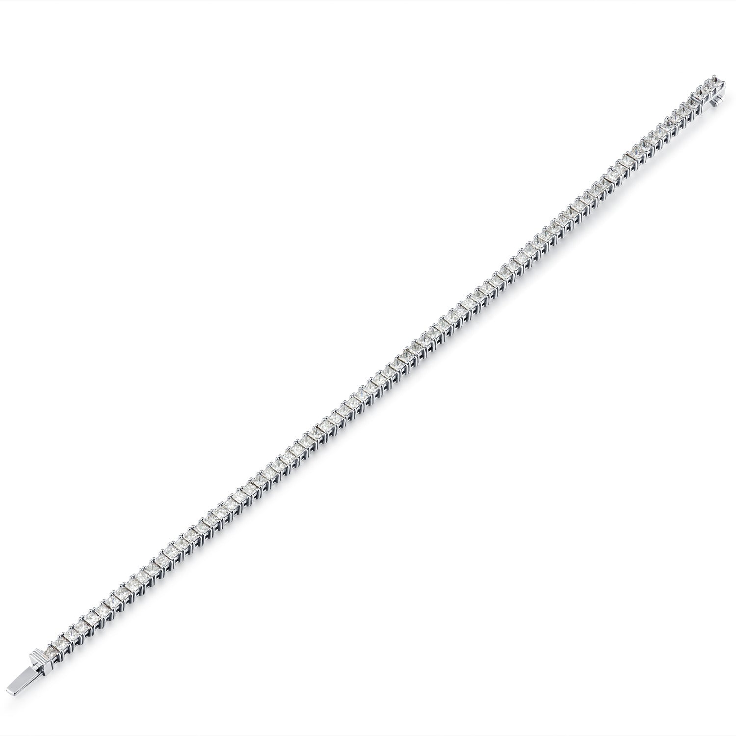 This exquisite baguette tennis bracelet features a total of 3.7 carats of lab-grown diamonds set in 6.42 grams of 18k white gold. Measuring 17.5 cm, its historic design combines timeless elegance with expert craftsmanship, making it a refined addition to any collection. The precise baguette-cut diamonds offer exceptional clarity and brilliance, ensuring a sophisticated and enduring sparkle.